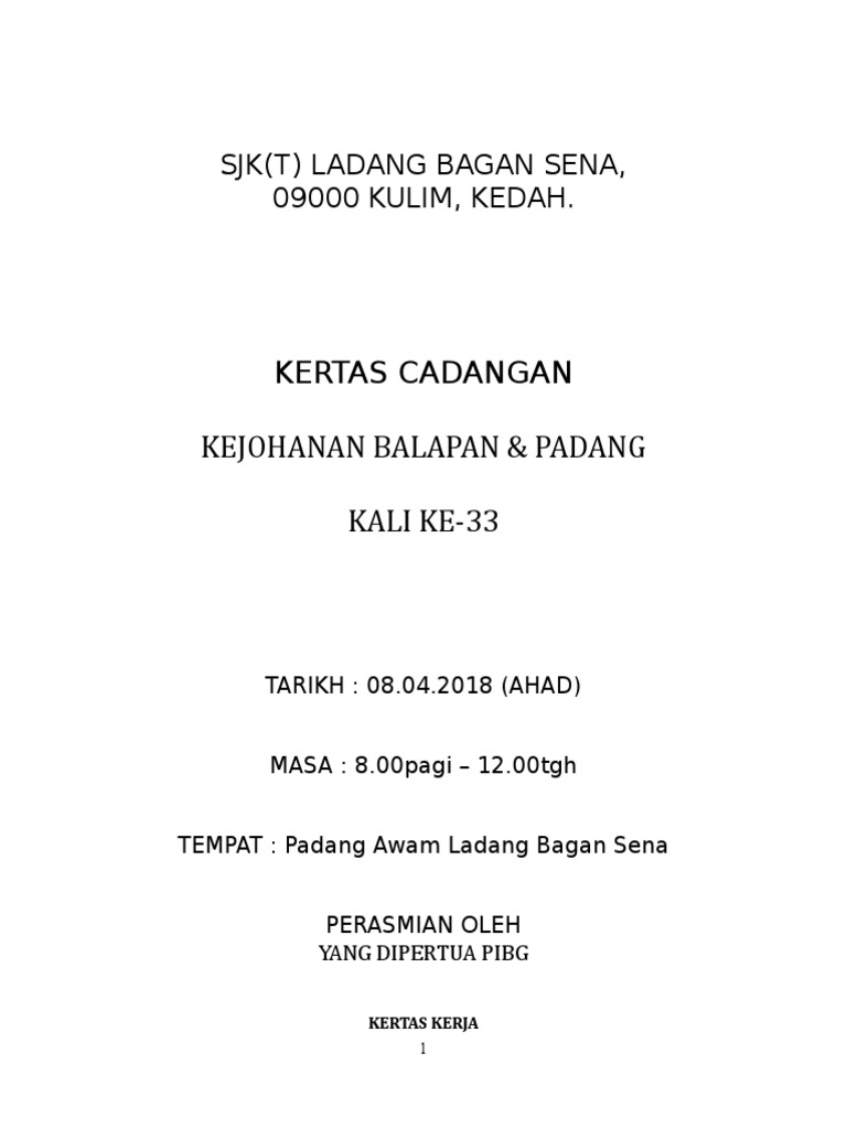 Panduan dan contoh kertas kerja sukan tahunan peringkat sekolah rendah untuk bahan rujukan kertas cadangan kejohanan balapan padang tarikh masa tempat. Ucapan perasmian sukan tahunan sekolah rendah. PADANG SK KAMPUNG KOLAM UNIT SUKAN 2020 KERTAS KERJA KEJOHANAN BALAPAN PADANG KALI KE 19 1.