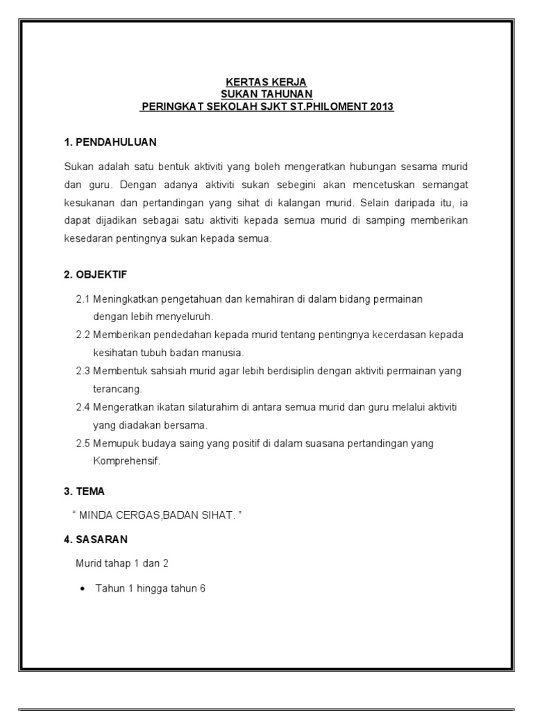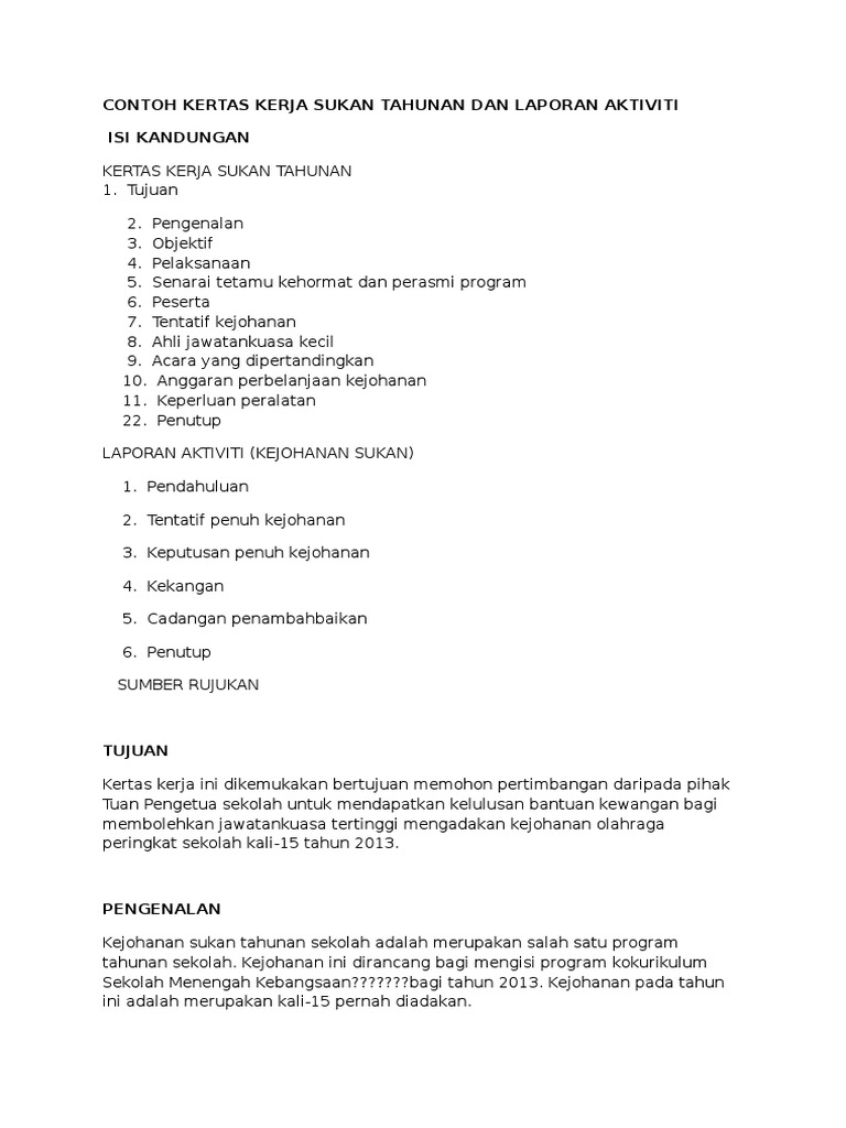 Contoh Kertas Kerja Sukan Tahunan Dan Laporan Aktiviti Pdf
